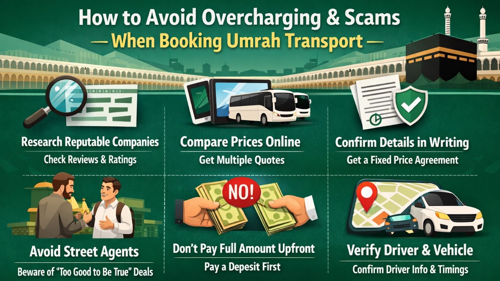Avoid scams. Avoid overcharging. Recommended top Umrah transport with UmrahTransport.com today. Travel with confidence. Worship with peace.