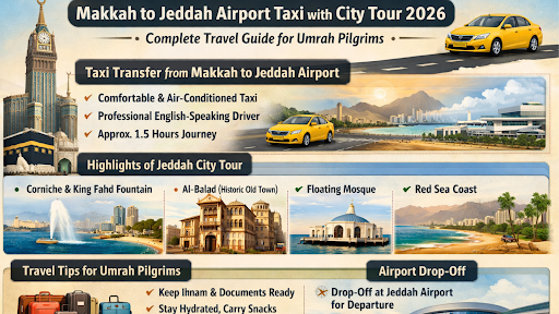 To a large number of Umrah pilgrims, the journey does not actually conclude when the rituals have been done in Makkah. The journey back to the Jeddah Airport can be the last episode of a highly spiritual journey. Many of the 2026 travelers are not traveling to the airport as fast as possible but rather opting to book a Makkah-to-Jeddah Airport taxi, including a city tour. The choice of this type of travel lets the pilgrims visit the historical sites and beaches of Jeddah and travel to their departure flight in a comfortable way. It eliminates the pressure of making individual arrangements for transport and sightseeing, especially for families or first-time visitors.